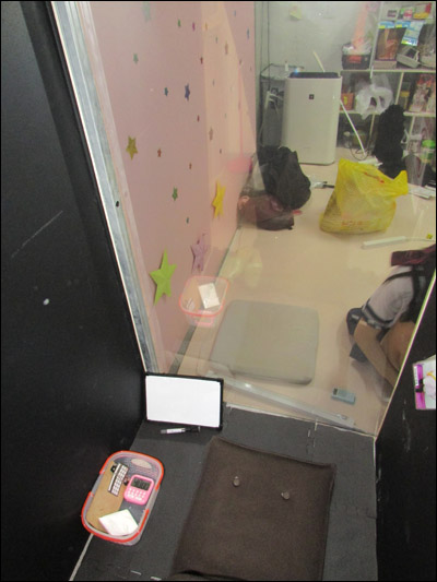 個室はカーテンで仕切られていて、半畳ほどの広さだった。前方全面がマジックミラーになっていて、もちろん反対側からこちらを見ることはできない。