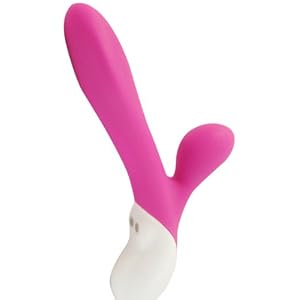 「この『WITH SMOOTH』は、本体とグリップが別々に振動するバイブレーターです。本体を挿入して使うもよし、グリップ部をローターのように接触させるもよしの一本で2度美味しいバイブなんです。新機能として、本体の3箇所にタッチセンサーを設置しました。スイッチで通常モードとの切り替えが可能で、タッチセンサーモードを起動させ、挿入してから力を入れ膣を締めると、その触れた箇所が震えるようになっているんです」