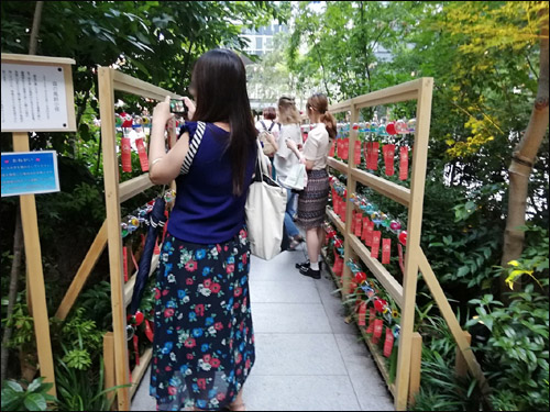 風鈴の音が響き、コンクリートと石の四角い街に、一服のお茶のような癒しの空間が…。