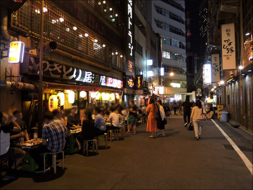 JRの高架沿いの路地は、浅草のホッピー通りや、赤羽の一番街商店街と見まごうばかりにテーブル席がハミ出し営業していた。