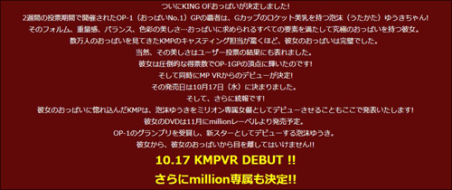 そしてグランプリに輝いた彼女は、KMP VRからのデビューも正式に決定です。