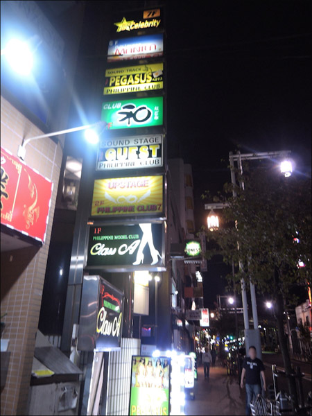 その看板を見ると、店名からどうやらフィリピンパブの様子。よく見ると、そのビル自体が飲み屋ビルっぽい。ちょうどそこで声をかけて来たフィリピン人のオヤジに聞くと、おもしろいことを教えてくれた。