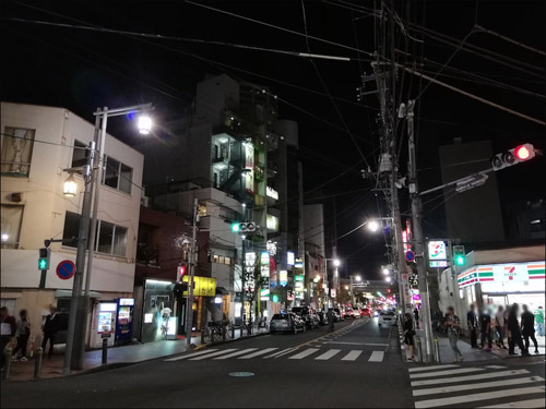 ロータリーを背に右手方向に路地を曲がると、その先にはキラキラしたネオンが見える。どうやら賑やかなのは、そこから先の2ブロック程度だけのようだ。