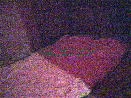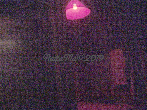 部屋の天井からぶら下がる洋風の照明器具。赤く色がついた電球が、部屋の中を怪しげなピンク色に照らしていた。