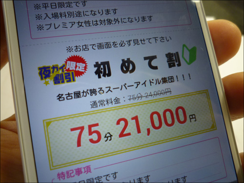 選んだコースは75分で、通常なら2万4000円+入場料2000円の計2万6000円かかるのだが、彼女の写メ日記の中で見つけた割引サービスを使用して2万3000円で遊べることに。写メ日記もチェックしてみるものである。