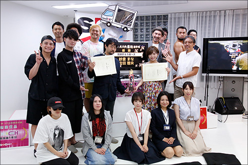 表彰状とトロフィーを特別審査員のバクシーシ山下監督から手渡され、SODから様々な副賞も贈られた。