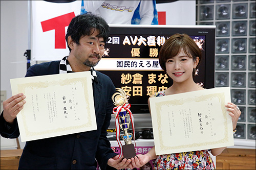 優勝した紗倉まなちゃんは「結構、ガチですよね。(審査委員が自分に甘い審査で)忖度してくれたら気まずいなあと思ったら、(回答がスベり)別の気まずさだった。ガチだった」とコメント。