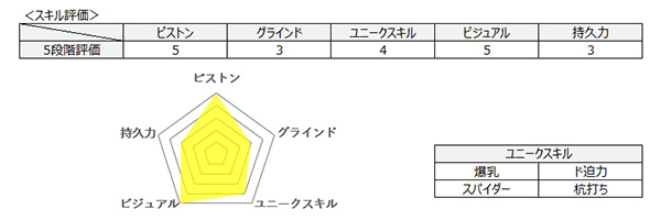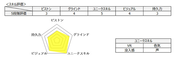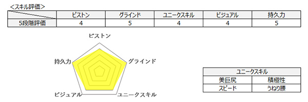 【持久力】=騎乗位タイム、激しさ、バリエーション…