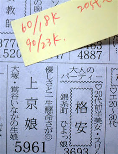 しかし、急速に増えた風俗はデリヘルだけでなかった。2004年頃から始まったのが、新聞の三行広告欄を利用した三行広告風俗ブームだった。それは、昭和でいう「ホテトル」、平成だと「DC」、という本番デリヘルである。