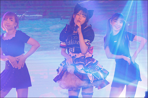 セクシー女優系のライブには欠かせない存在のあおいれなちゃんがダンサーを従えて登場すると、オリジナル曲の『パンチラの女神さま』『がまんJUICEもっとちょうだい』『ちっぱい最強伝説』などを披露。下ネタソングで大いにファンを沸かせた。