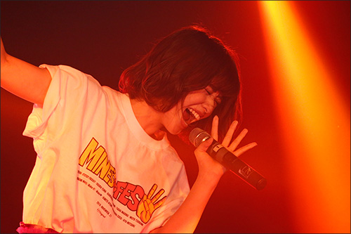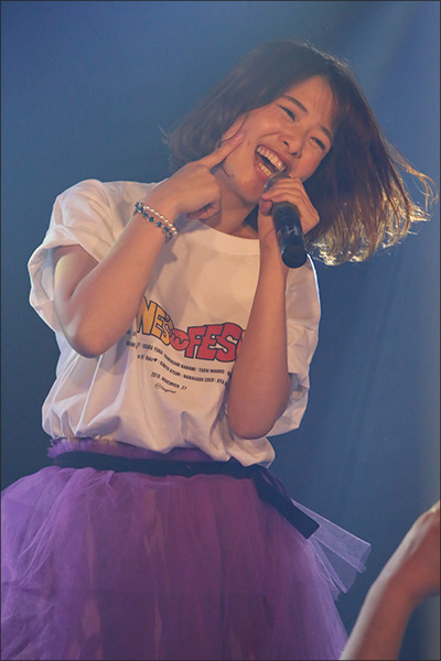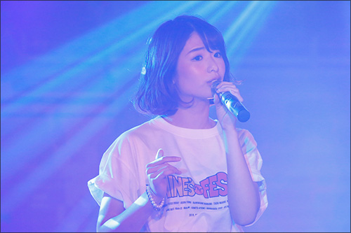 実力と安定感を兼ね備えたライブパフォーマンスを見せる川上奈々美ちゃんはトリ前に登場! 新曲の『声を聞かせて』『飾らないままに』『未完成ピエロ』とオリジナル曲で畳みかけた。曲後は「出し切ったよ! 出し切らないと意味ないじゃん」とアツいコメント。演じることを宿命づけられた女優の気高いメッセージだった。
