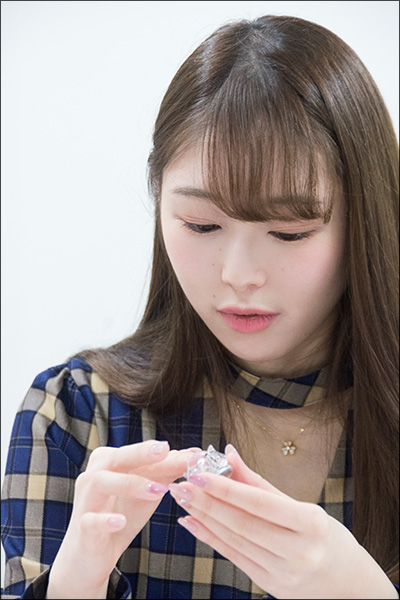 あみん:え~~~~! すご~い! (舌の形をしたアタッチメントを体感して)ほんまや~! すご~い!!! 舌のザラザラ感もあって、アタッチメント自体も震えるから吸われている感覚になりそう。