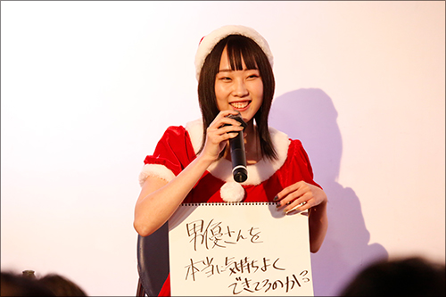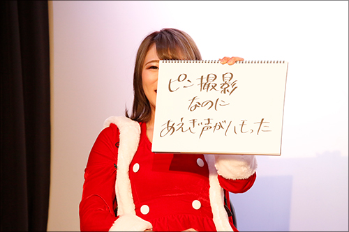 川菜美鈴ちゃんは「コンドームを付けても毎回、破れる」と考えただけでも恐ろしい回答。川越ゆいちゃんは実際にあり得そうな「女優ひとりの撮影なのに、喘ぎ声がハモった」という答えで会場を盛り上げた。