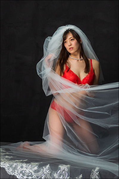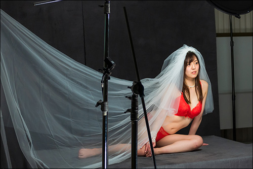 「初めて撮影して頂き、とても緊張しましたが素敵なベールが体を包み込んだ瞬間に気持ちが高まって、また違った表情の『七瀬いおり』を感じてもらえると思います。撮影した写真を見て、私こんな表情ができるんだと自分でも驚きました(笑)」