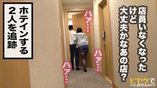 2人を追跡し、ホテルの中に入ると…。エノモトさんにまたがり喰らつくえまちゃんの姿が(笑)。ここからは、男優も交えて3P開始!
