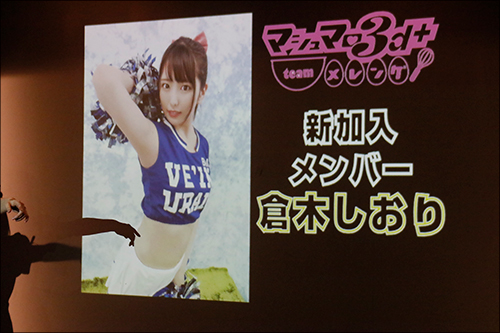 大盛況だったライブが終わると、スクリーンにはサプライズ報告が。3月のライブから『メンズサイゾー×ゲオTV ヌケるセクシー女優No.1決定戦』で、「タイニーガール部門ナンバーワン」に輝いた倉木しおりちゃんの電撃加入が発表され、大歓声が巻き起こった。