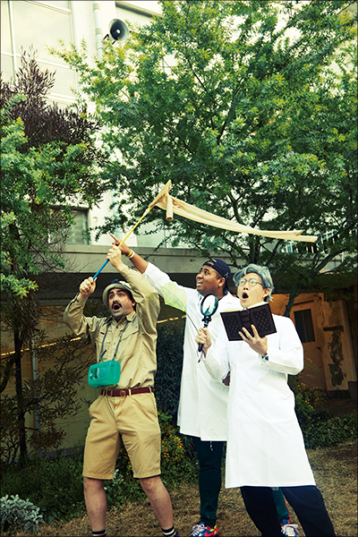 アダルトグッズ博物館の入り口を抜ければ、そこはもう不思議な幻想世界。本日は探検家の植野氏が、研究者のおたけ氏、アントニー氏と一緒にガーデンテラスで珍しい蝶を採集しているのですが、なぜか虫取り網の存在感が、ハンパない気が…。今回は、幻の蝶よりもフェチ心を直撃するグッズをご紹介します。