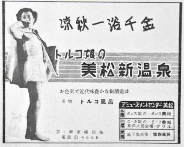 当時、日本で有名なトルコ風呂街は、美女の集まる東京・吉原、泡踊り発祥の川崎・堀之内、そして、サービス抜群と言われた滋賀・雄琴の3ヶ所だった。では、なぜ琵琶湖のほとりの田園地帯だった場所にトルコ風呂ができたのか? 昭和46年(1971)、雄琴に最初のトルコ風呂『花影』を建てたのは、石川県の山中温泉でトルコ風呂『花園』を経営する田守世四郎だった。田守は、すでに世間ではモータリゼーションが始まり、マイカーで遠出をするようになっていた時代背景から、郊外型のトルコ風呂は需要があると見込んだのだ。 そんな話をバカにする仲間もいたが、田園の中に建った4階建てのトルコ風呂は、開店当日から満員御礼となった。翌年になると、同じ場所に新たなトルコ風呂が続々と進出し、あたりは一大トルコ風呂街へと発展。近隣にあった雄琴温泉との相乗効果で大いに賑わったのだった。 ここまではネットの記事でもいろいろなところに書かれている事実だが、筆者は以前何かの記事を読み、「雄琴に集まってきたトルコ風呂は、京都市内から逃れてきたもの」だと記憶していた。しかし、その裏付けを取ろうといろいろ探したのだが、裏どころか、その記事の出展もあやふやなことに気付かされた。 『観光都市』を標榜する京都市から、トルコ風呂が排除されることは無きにしも非ずだが、その歴史が残っていない。大阪は1990年の花博の際に、ソープランドを府内から排除したが、その20年前の京都のトルコ風呂の件が、どうにも裏が取れないのだ。 今後、この風俗史を書き進める中で、ひょっとしたら事実がわかるかもしれないので、その際には後世に残るよう、確実に書き残しておくことにする。 |