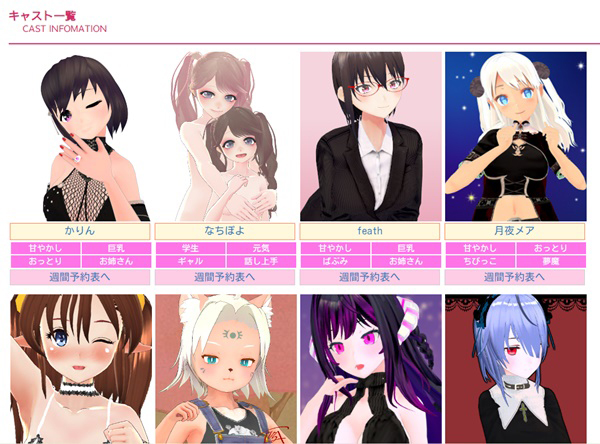 登録されているキャストは、それぞれがTwitterのアカウントを持っており、動画サイトの個人チャンネルを持っている子もいるので、お店以外での活動も確認できる。