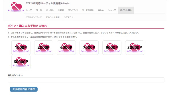 希望通りの枠が確認できたら、いよいよプレイ予約だ。プレイ時間は1枠40分となっており、料金は前払い制。予約をする際には「X-Oasis」内で使用できるポイントを購入し、ポイントで支払う形となっている。予約に必要なポイントを選択して購入しよう。