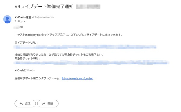 プレイ時間になると案内メールが届くので、メール内に表示されているアドレスをクリックするとVR空間に接続される。ちなみに、前述したマイページの直近の予約からでも、プレイ時間になれば接続が可能だ。