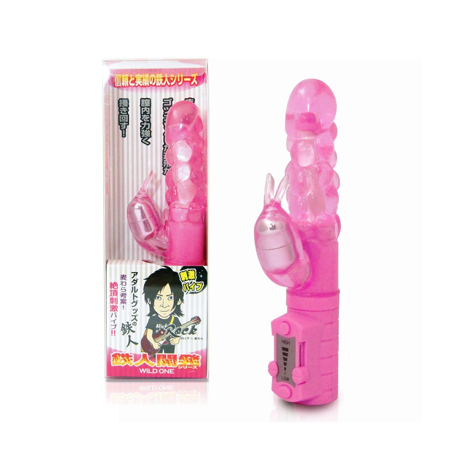 エロの鉄人たちが開発した鉄人バイブは、ロック・ウェーブ・カリーナの3種類がある。バイブ下部に上下左右に4つ付いたスイッチで振動や回転の向きを操作できる。上部はカリ部分の回転の向きを決定でき、下部は本体のオンオフ、右は本体の強弱を操り、左ではクリトリス接着部の強弱を決められる。「鉄人バイブシリーズ」は本体の振動を最弱から最強まで5段階で設定でき、女性の快感のポイントを広範囲で抑えることが可能だ。そして特筆すべきはクリトリスに接触するギミックのユニークさだろう。